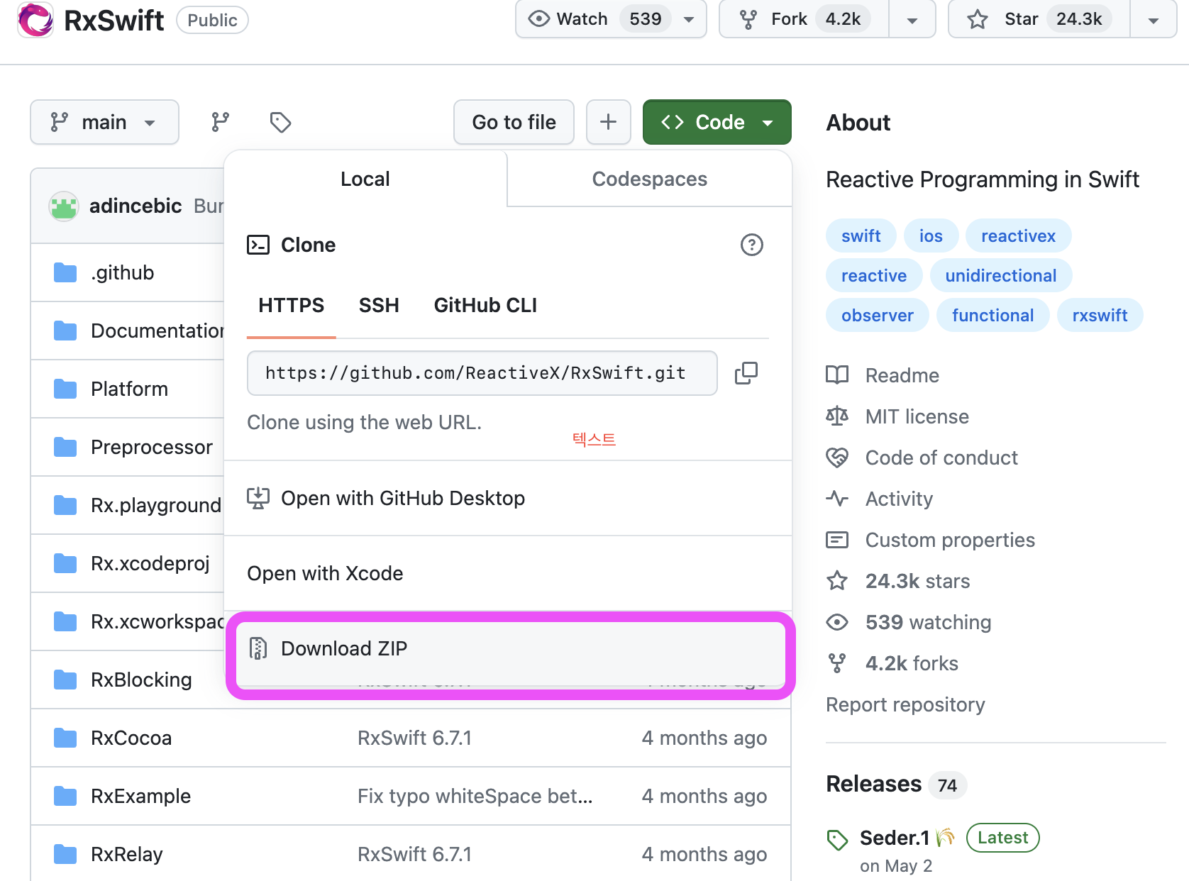 자체 제공되는 RxSwift Example Code 활용하기